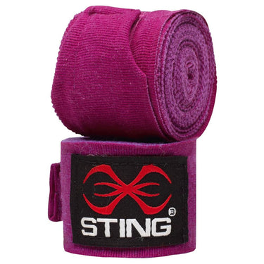 An essential part of your kit to protect your hands, these Sting hand wraps are elasticated with a thumb hook for easy application. They provide comfort and support and for a secure fastening have a covered hook and loop closure. Thumb hook for easy application Semi-elasticised compression material for comfort and support Covered hook and loop closure for secure fastening Multiple colours and styles 4.5M and 2.5M