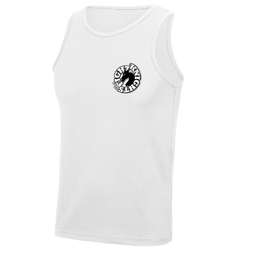 This great vest will keep you cool while working out and features the Fight Knights Boxing Gym logo on the left chest and text on the back.